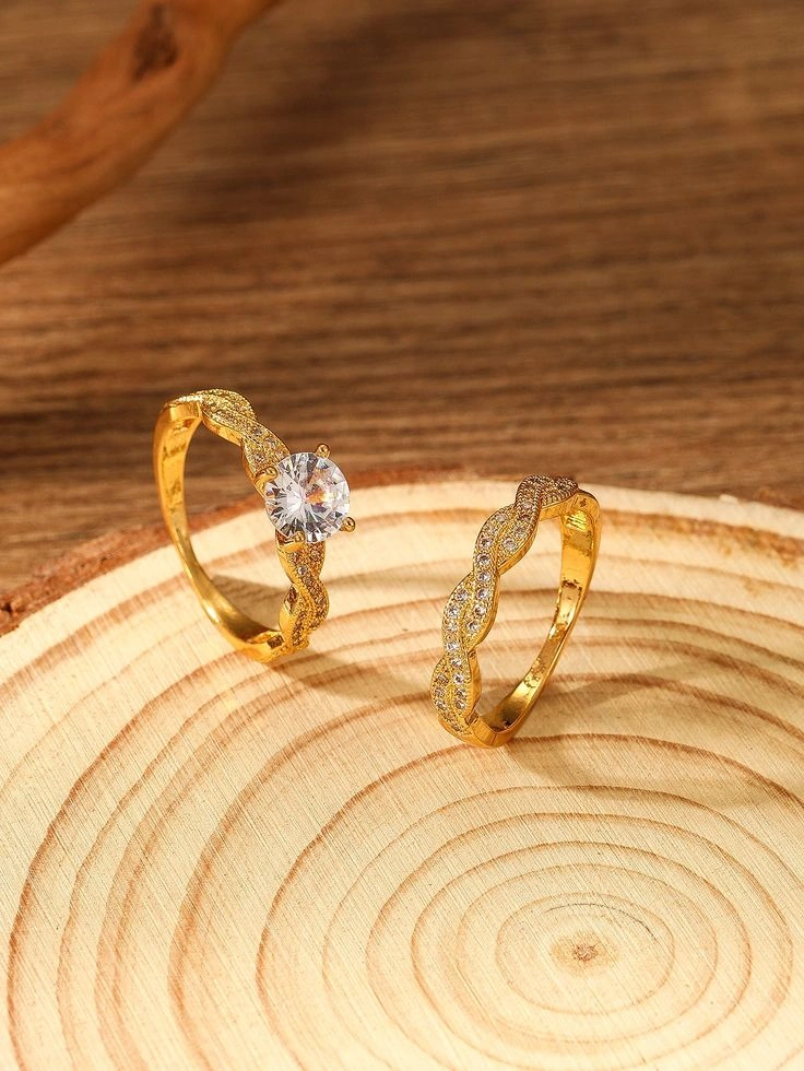 Dazzling Glossy Finish Couple Yellow Gold 22kt CZ Rings