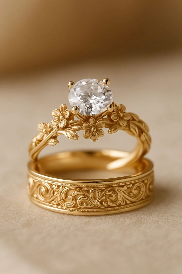 ravishing engraved daily wear yellow gold 18kt ring