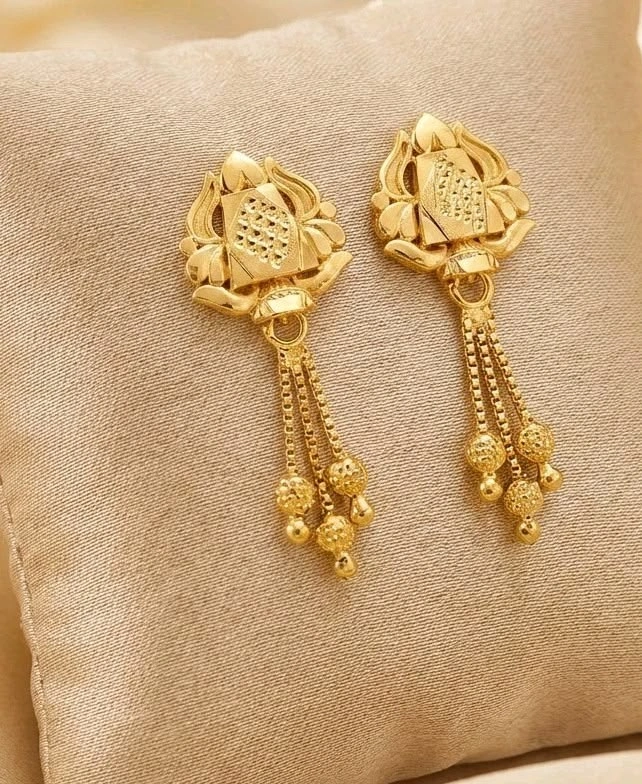 traditional textured daily wear 22kt yellow gold dangler earring